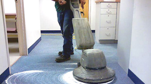 (g)打開發(fā)泡開關(guān),待泡沫充滿地毯刷后開動地擦機(jī),將清洗泡沫擦人地毯中。